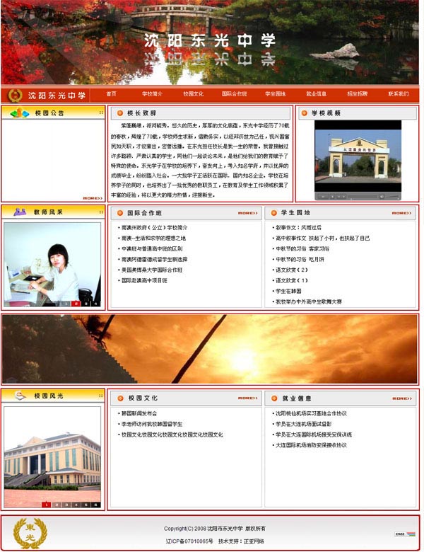 沈陽(yáng)東光中學(xué)創(chuàng)辦于1937年,隸屬于沈陽(yáng)教育局,悠久的辦學(xué)歷史,特色的辦學(xué)理念,完善的教學(xué)設(shè)施,使今天的東光中學(xué)成為振興遼寧經(jīng)濟(jì)、振興民族教育、提高民族素質(zhì)的搖籃。學(xué)校周邊綠樹環(huán)繞,交通便利,為學(xué)子營(yíng)造了優(yōu)雅別致的學(xué)習(xí)環(huán)境。目前學(xué)校投巨資,改建了教學(xué)樓、綜合樓、教室里安裝了現(xiàn)代化教學(xué)設(shè)備—投影儀、電腦及主控設(shè)備,使每個(gè)學(xué)生都能夠享受到信息化時(shí)代的優(yōu)質(zhì)課堂教學(xué)。學(xué)校還開設(shè)了選修課,實(shí)行學(xué)分制,學(xué)生實(shí)現(xiàn)個(gè)性化發(fā)展搭建了平臺(tái)。